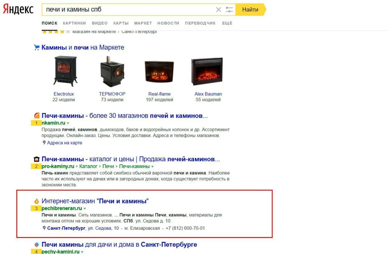 • Проанализирована ниша магазинов печей и каминов
