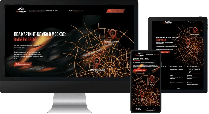 Le Mans Karting – картинг-центр, предлагающий аренду трассы, заезды и проведение корпоративных мероприятий. Компания ориентирована на частных клиентов и бизнес-аудиторию, для которых важны удобство бронирования, понятная подача услуг и современный формат взаимодействия с сайтом. При работе над проектом мы учитывали развлекательную специфику бизнеса и необходимость быстро вовлекать пользователя и подводить его к записи.