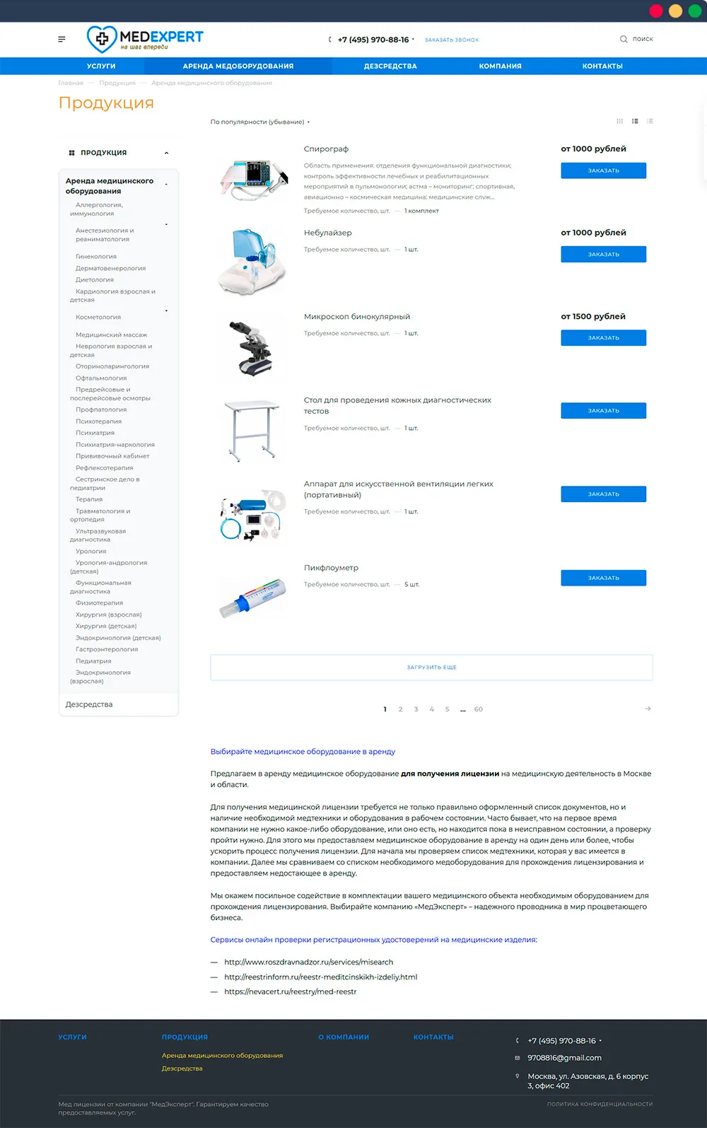 Проанализирована ниша сайтов предоставляющих медицинское оборудование в аренду