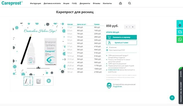 • Переделали полностью шаблон под 1 товар, чтобы можно было продавать его с главной страницы.